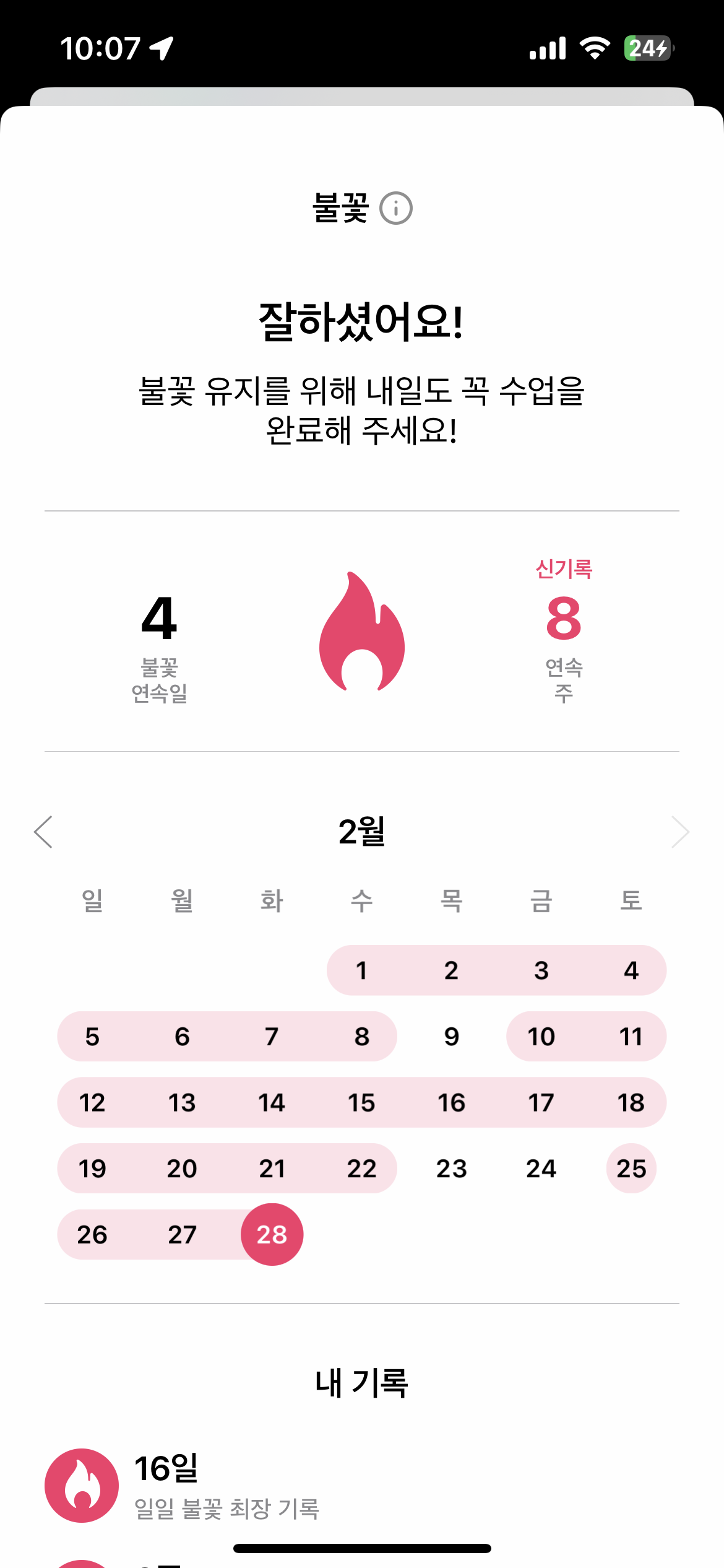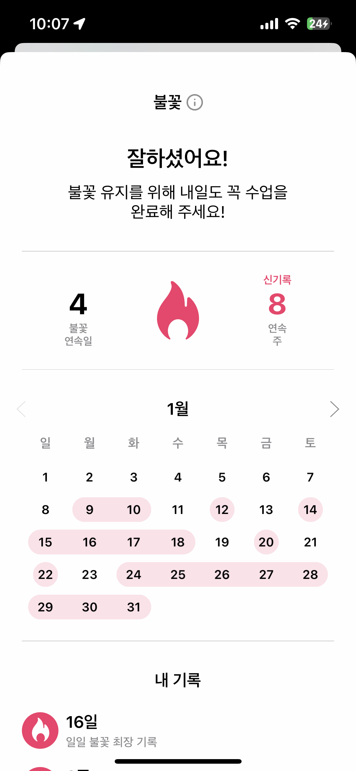 하지만, 의지박약인 저를 51일 동안 43일 불꽃을 채우게 했으니