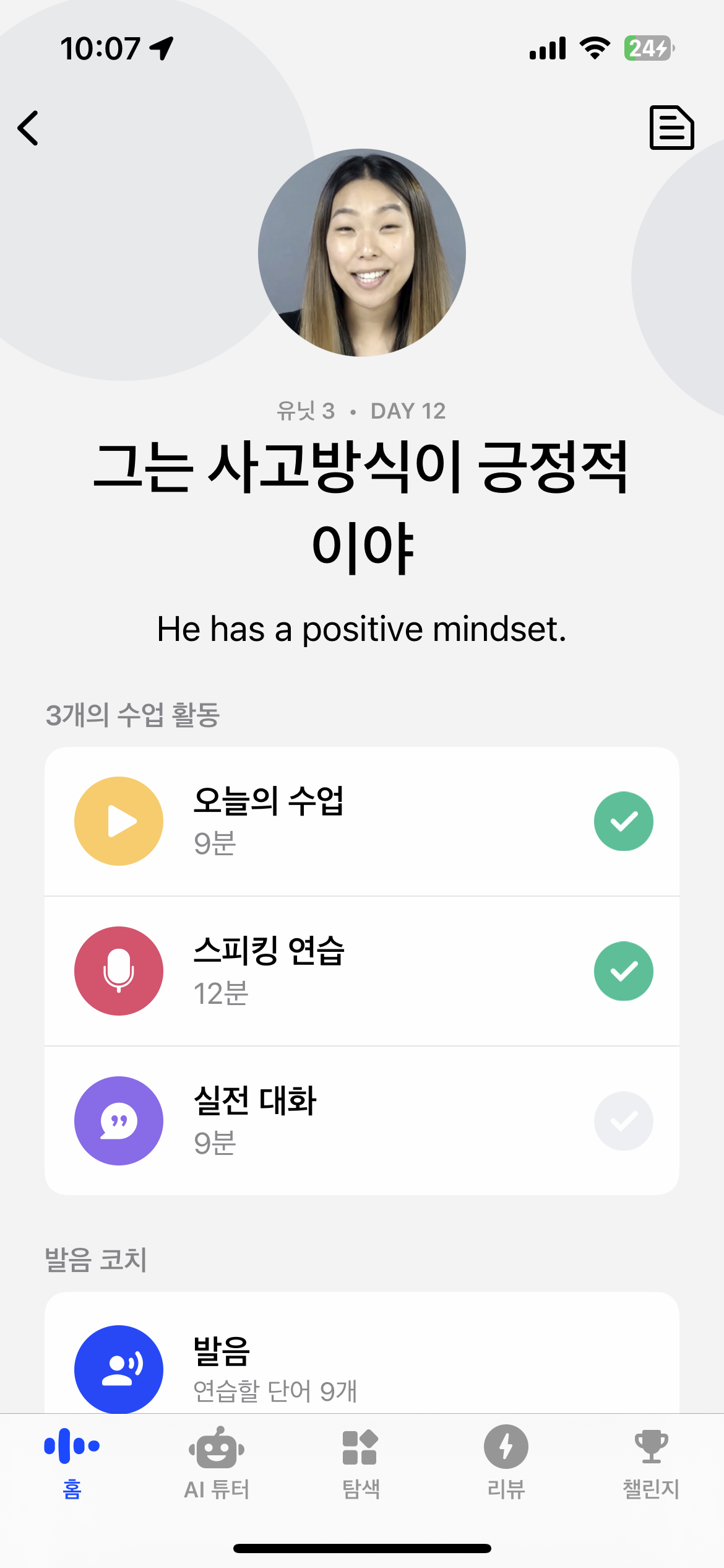 그리고, 주말에 집에서 스픽 앱을 하고 있으면